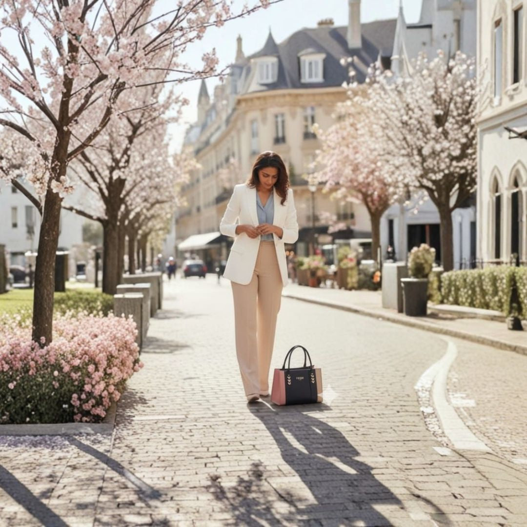 Fendi Roma Black Leather Handbag with Pink & Beige Side Panels