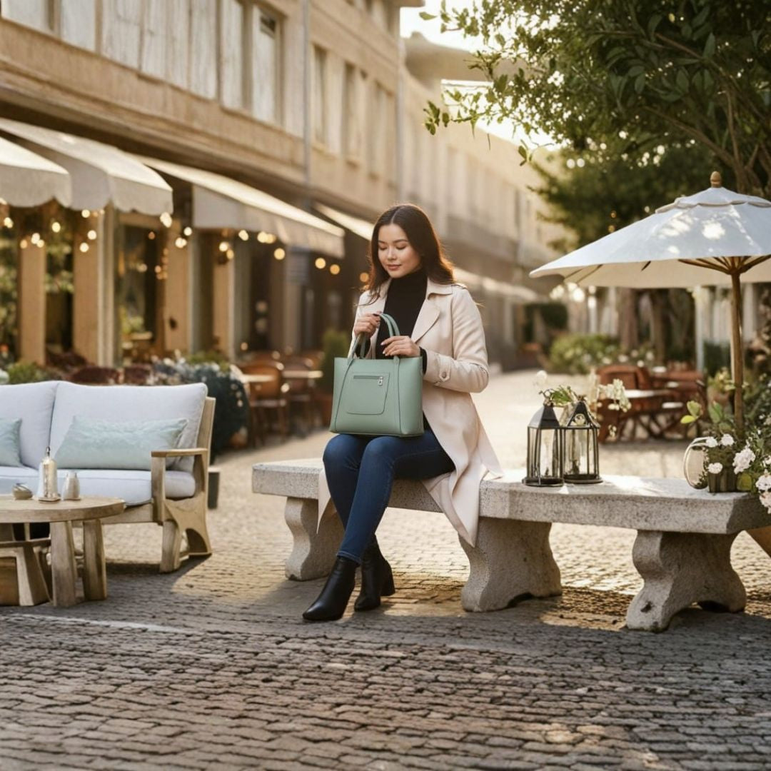 Women’s Elegant Tote Handbag – Soft Sage Green